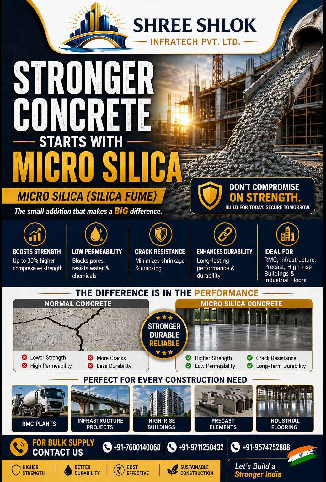 At **Shree Shlok Infratech Pvt. Ltd.**, we provide high-quality micro silica designed to meet modern construction demands. Our product ensures: